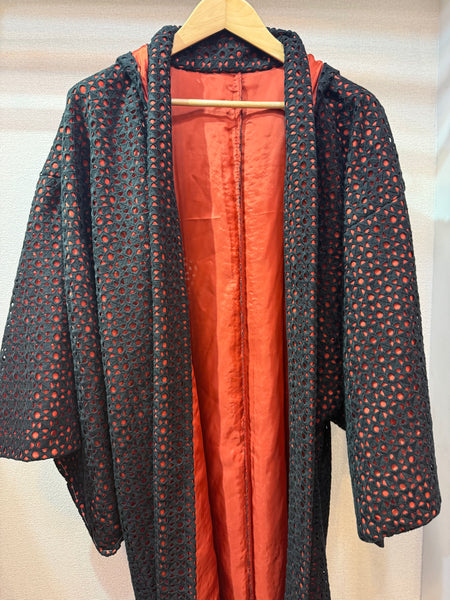 フーディー長羽織 ブラックレース